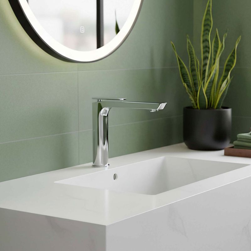 El Monocomando de Lavatorio Baja Eleganza Chrome Appolo es la expresión del lujo contemporáneo. Su acabado cromado refleja la pureza del diseño y la precisión de los detalles, aportando un brillo sofisticado que eleva la estética de cualquier baño.